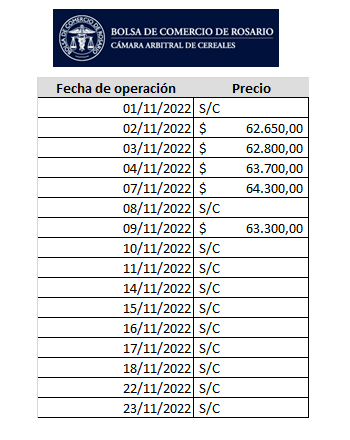 La segunda es el valor informado al final de cada jornada en la plataforma Sio Granos, que se confecciona en base a un promedio ponderado de todas las operaciones realizadas con destino al norte y sur de las terminales de Rosario tanto de soja cámara como fábrica.